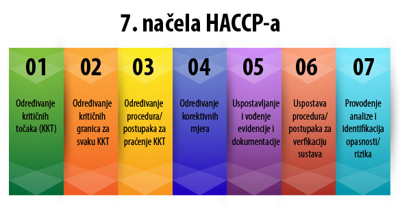 U izradi HACCP planova upotrijebljeno je sedam temeljnih načela. Osnovna načela uključuju određivanje opasnosti, identifikaciju kritičnih kontrolnih točaka, određivanje kritičnih granica i postupaka praćenja, tj. monitoringa, određivanje korektivnih akcija, te verifikaciju i vođenje dokumentacije.